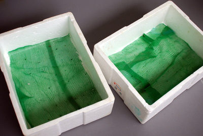 Đục lỗ dưới đáy thùng xốp để thoát nước